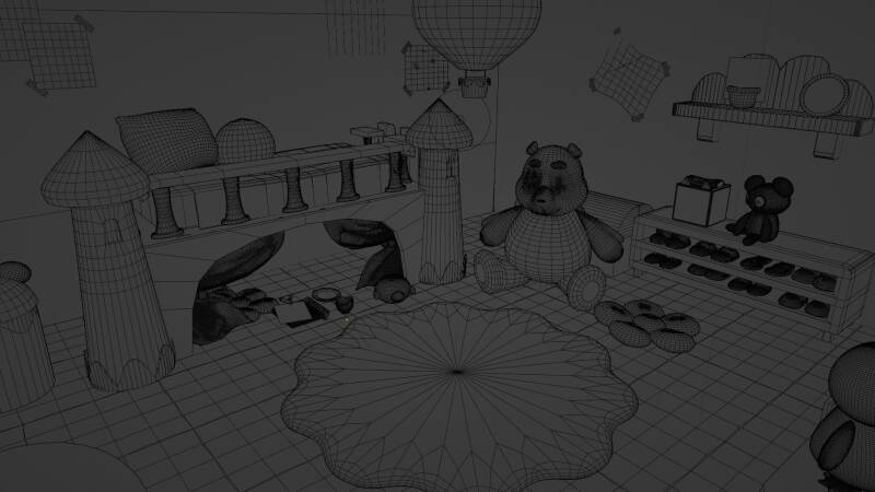 Fondo modelado, texturizado y renderizado en Blender, utilizando utilizando toon shader generado por nodos y grease pencil para lograr el aspecto 2D. Para la serie "El tierno mundo de Hayley". *Arte conceptual proporcionado por Pistis Animation*